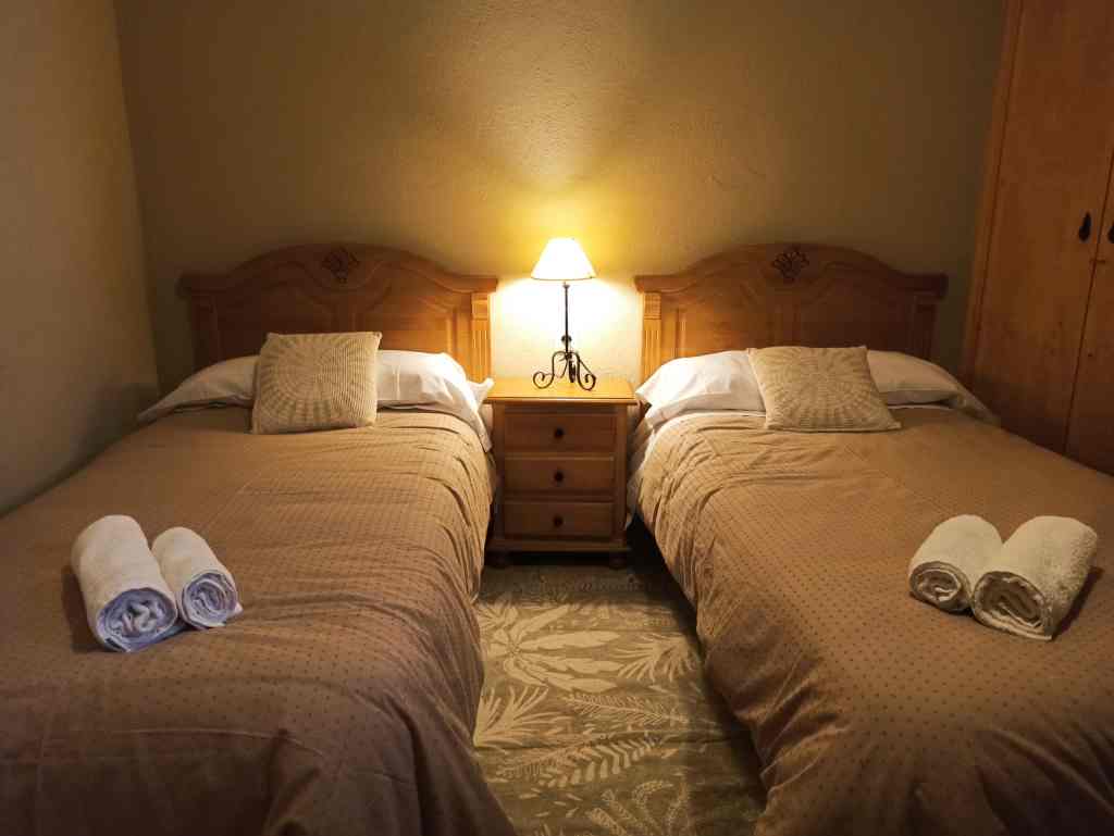Arinesa A compuesta de una planta baja. Tiene: 3 dormitorios (2 con 2 camas individuales y uno con 2 camas individuales y una de matrimonio con baño privado). Una cocina completamente equipada (vitrocerámica, microondas, nevera, lavadora...), 1 baño común y un salón comedor. Dispone de calefacción central, wi-fi y barbacoa.