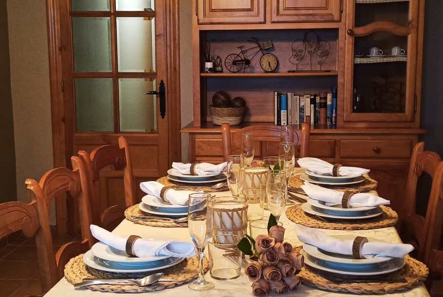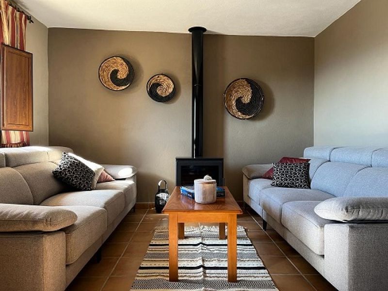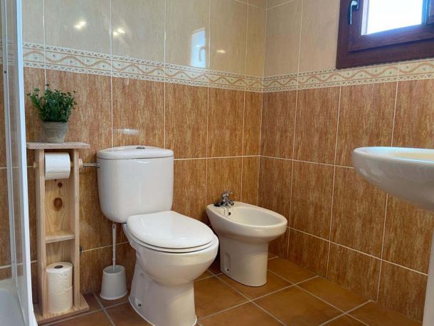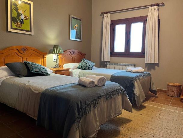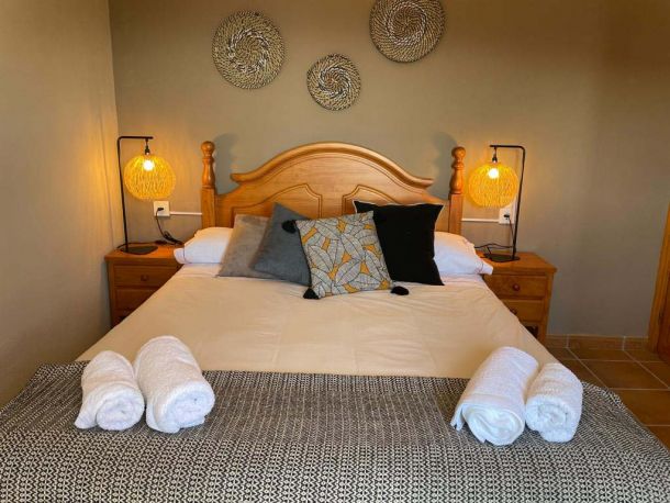 Esta casa tiene: 4 dormitorios (2 con 2 camas de matrimonio y baño interior y 2 con 2 camas individuales. Una cocina completamente equipada (vitrocerámica, microondas, nevera, lavadora...), 1 baño, 1 aseo y un salón comedor con un sofá cama y TV. Tiene calefacción, CHIMENEA, wi-fi y barbacoa.