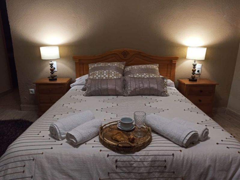 Esta es la casa más grande que poseemos. Está ubicada a unos dos kilómetros del pueblo. Se llega a ella por una pista asfaltada que sale del mismo. Se compone de planta baja, planta primera y planta bajo cubierta. Cuenta con 7 dormitorios (5 con cama de matrimonio y 2 con cama individual, todos ellos con baño privado). Además posee dos grandes salones ( uno en planta baja que es salón-comedor y otro abuhardillado en la última planta) ambos con tv, dos baños comunes, y una amplia terraza con barbacoa cubierta. Dispone de calefacción central.